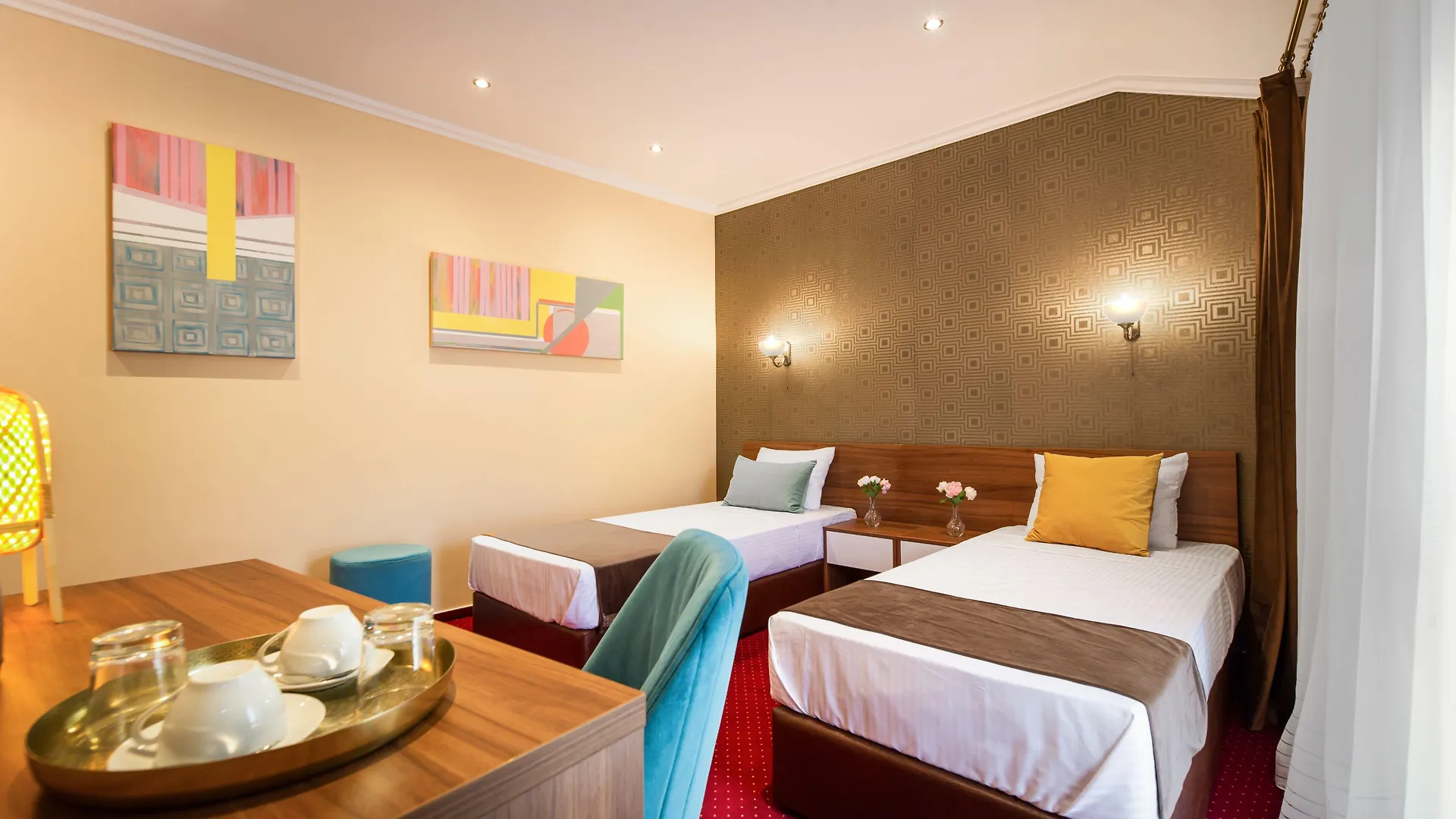 The 3-star smoke-free Bucur 9 Hotel Bucharest is nestled in the middle of the centre of Bucharest, nearly 20 minutes' walk from Parcul Tribunalului, and features Wi-Fi and a car park. There is a shopping area and a luggage room available on the premises.